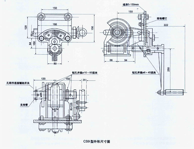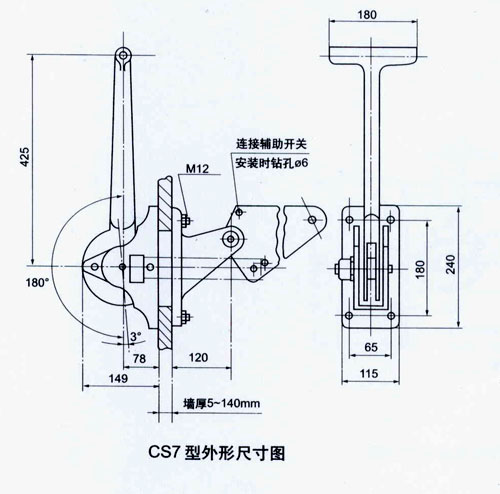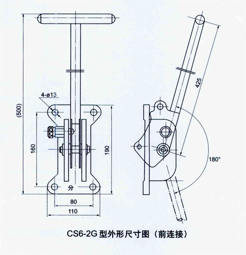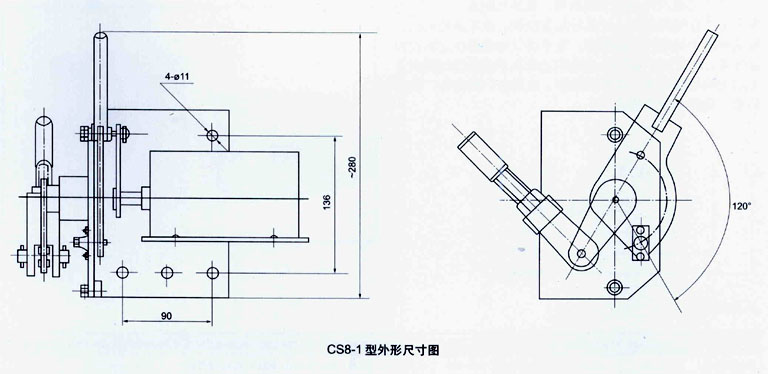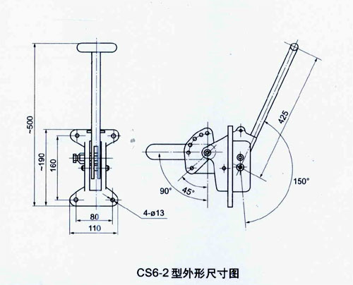 CS型手動機構(gòu)由底座、操作手柄及邊板等組成。