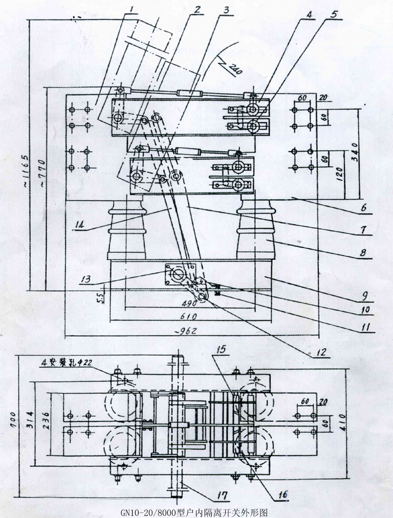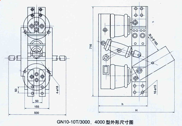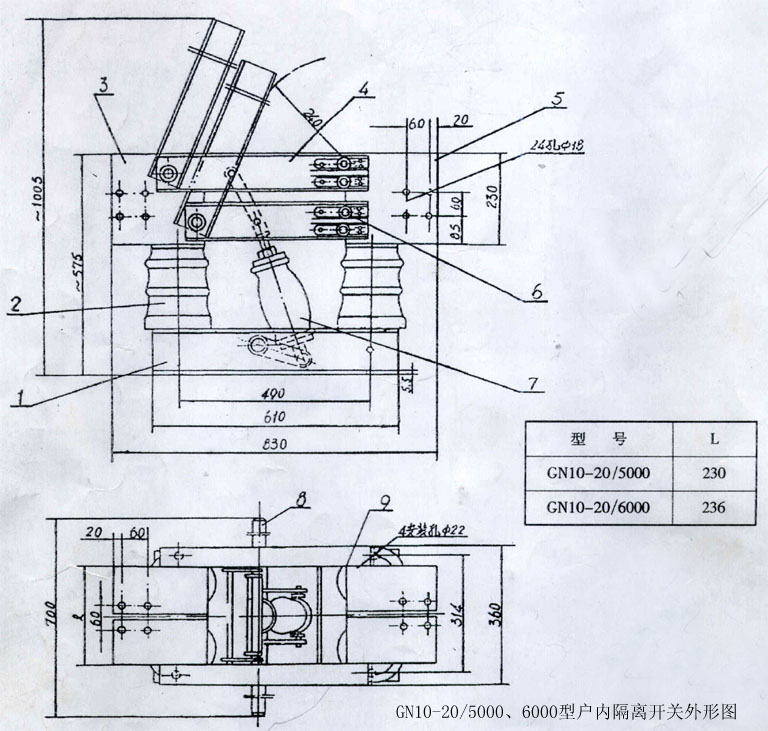 GN10型戶內(nèi)單相高壓隔離開關(guān)由底座、支柱瓷絕緣子、操作瓷絕緣子和導(dǎo)電部分組成。可單相或三相聯(lián)接使用?膳涫謩(dòng)或電動(dòng)機(jī)構(gòu)操作。